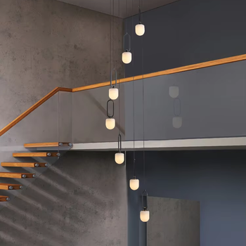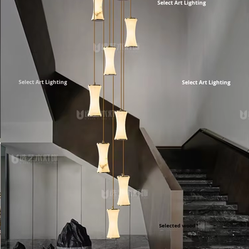 Moderne Villa Zolder Koperen Kroonluchter Duplex Woonkamer Natuurlijke Albast Wenteltrap Eenvoudige En Elegante Design Lamp