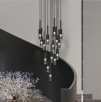 Moderne Eenvoudige Villa Duplex Trap Verlichting Multi-Head Kristal Lange Lineaire Kroonluchter Voor Opknoping Roterende Wijnfles Ontwerp