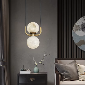 Moderne Nordic Luxe Enkele Dubbele Kop Volledig Koperen Hanglamp Marmeren Bal Ontwerp Voor Restaurant Bar Bed-Restaurant Bar Bar