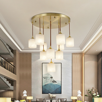 Sang Trọng Tất Cả Đồng Đèn Chùm Mới Trung Quốc Phong Cách Duplex Biệt Thự Cầu Thang Không Gian Mở Phòng Khách Chiếu Sáng Nhập Khẩu Mặt Dây Chuyền Đèn