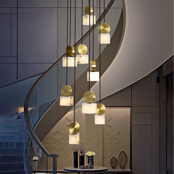 Biệt thự hiện đại gác mái Đèn chùm đồng Duplex phòng khách tự nhiên Alabaster xoắn ốc cầu thang đơn giản và thanh lịch thiết kế đèn